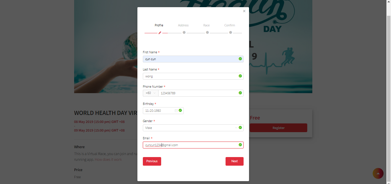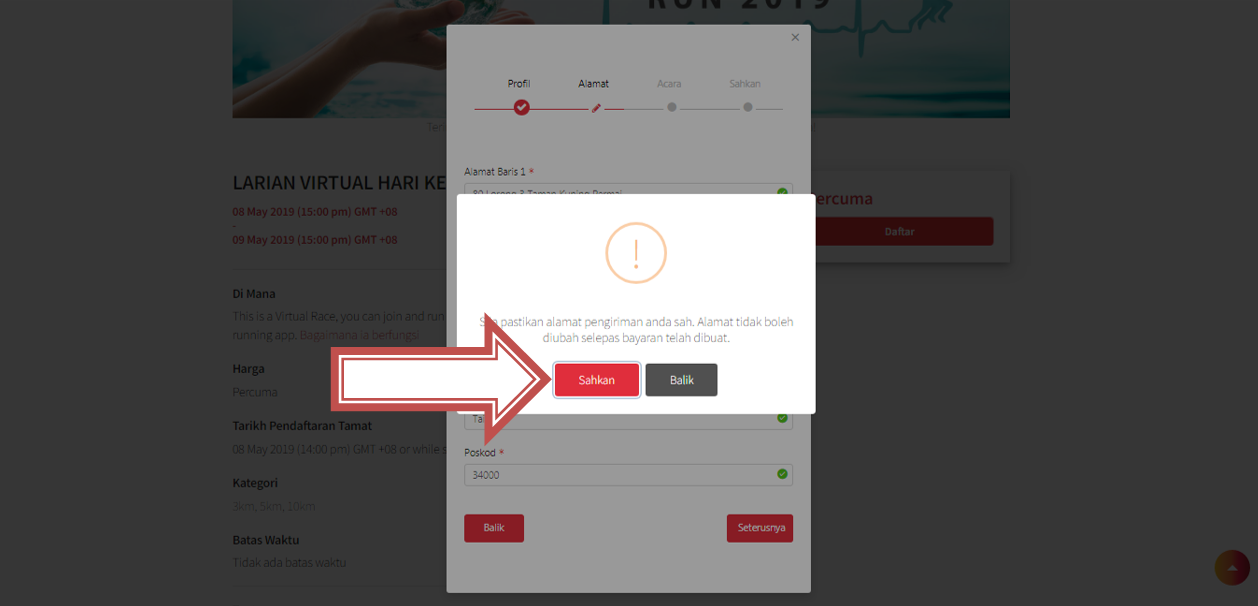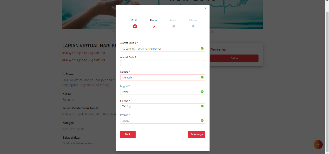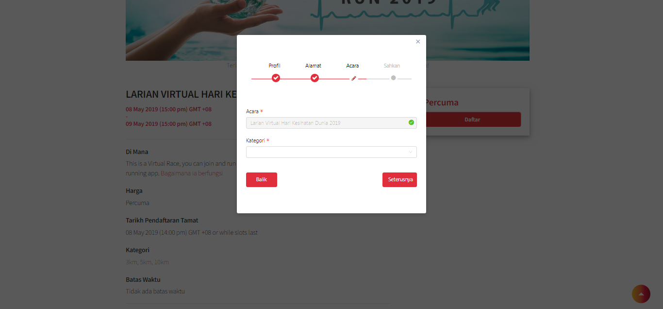 5. Choose the kilometres you want to participate in. If there are T-shirts or other items in the event, you can choose to purchase them.