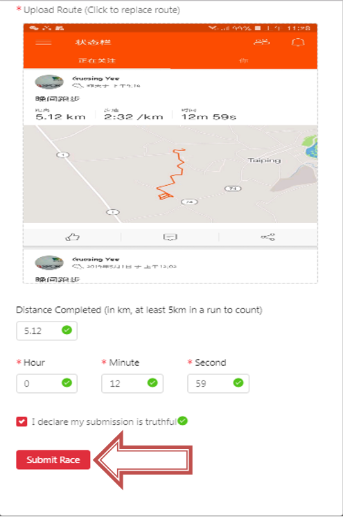 5. By checking “I declare my submission is truthful” and click on “Submit Race”.